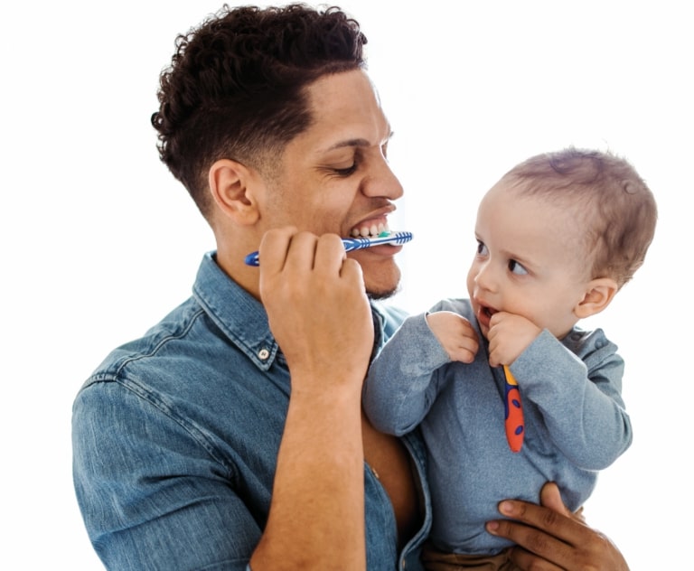 Cepíllame los dientes dos veces al día con agua y un cepillo de dientes pequeño de cerdas suaves.